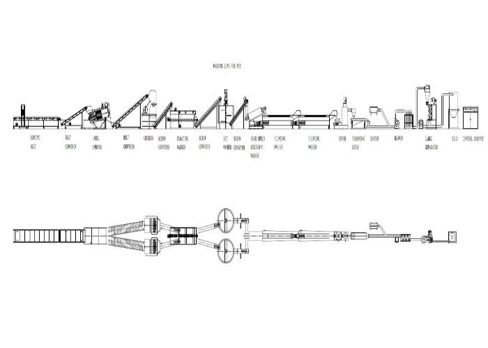 पूरी लाइन की प्रक्रिया: बेल्ट कन्वेयर- प्लासिक क्रशर- फर्क्शन वॉशिंग और डीवाटरिंग मशीन-स्क्रू फीडर- राइजिंग वॉशर-हाई स्पीड फ्रिक्शन वॉशर- रिंसिंग वॉशर-हॉरिजॉन्टल डीवाटर मशीन-हॉपर-स्क्रू फीडर-पीई पीपी दो चरण एक्सट्रूडर-हॉपर।पूरी लाइन डिवाइस को कच्चे माल की गंदी डिग्री, पैकिंग विधि के अनुसार डिजाइन किया जाएगा।