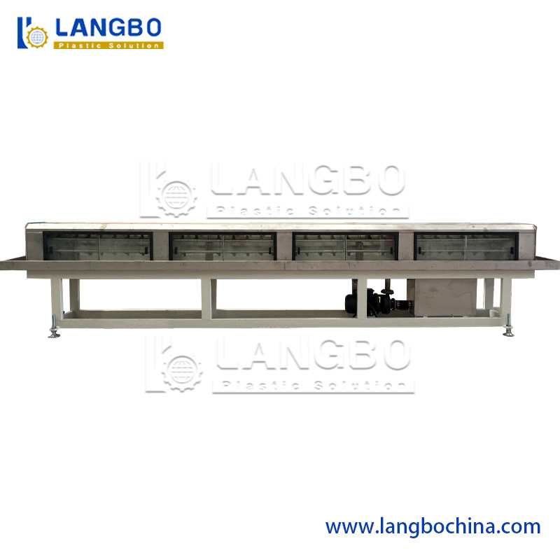 वैक्यूम कैलिब्रेशन टैंक दो चैंबर संरचना को अपनाता है: वैक्यूम कैलिब्रेशन और कूलिंग पार्ट्स। वैक्यूम टैंक और स्प्रे कूलिंग टैंक दोनों स्टेनलेस 304 स्टील को अपनाते हैं। उत्कृष्ट वैक्यूम सिस्टम पाइपों के लिए सटीक साइज़िंग सुनिश्चित करता है। हमने वैक्यूम और कूलिंग टैंक को 8 मीटर तक बढ़ाया है। बहुत लंबे कूलिंग प्रक्रिया के साथ, सीपीवीसी पाइप को अच्छी तरह से ठंडा किया जा सकता है और बेहतर सतह हो सकती है।