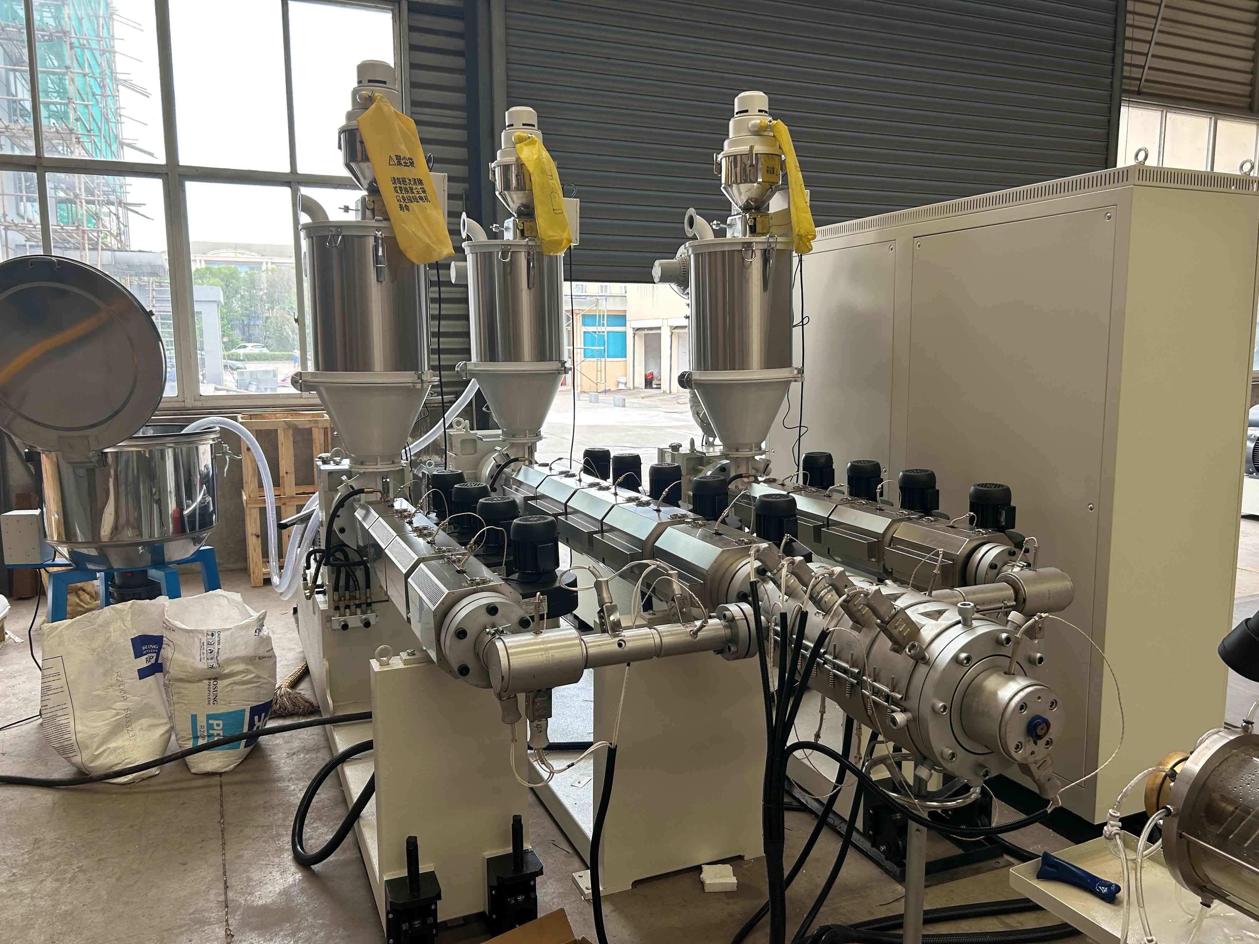 कच्चे माल (पीपीआर/पीवीसी गोली, additives) को स्वचालित रूप से hopper में डाला जाता है और समान रूप से मिलाया जाता है।