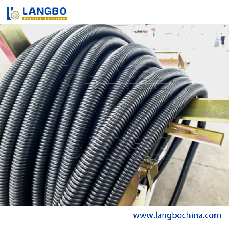 प्लास्टिक के कणों को हॉपर में डाला जाता है और नियंत्रित तापमान और दबाव में एक्सट्रूडर में पिघलाया जाता है।पिघली हुई सामग्री को फिर वैक्यूम या दबाव बनाने के द्वारा घुमावदार मोल्ड में आकार दिया जाता है. आकार देने के बाद, लहराती पाइपों को उनके आकार को स्थिर करने के लिए पानी से ठंडा किया जाता है। ठंडा पाइप स्वचालित रूप से आवश्यक लंबाई तक काटा जाता है और निरीक्षण और पैकिंग के लिए कॉइलर द्वारा एकत्र किया जाता है।