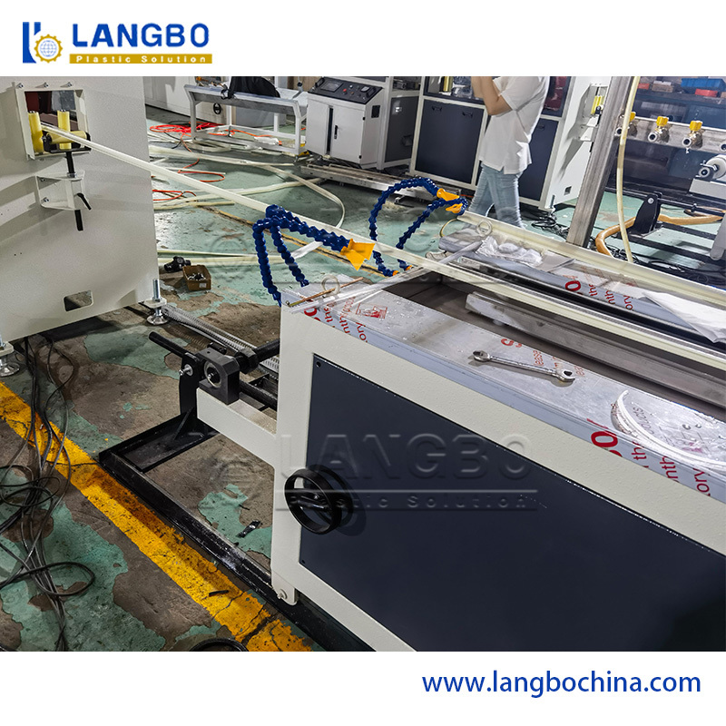 The process flow of this line is PVC powder + additive - mixing-material feeder-twin screw extruder- mould and calibrator-vacuum forming table-haul-off machine-cutting machine-discharge rack.