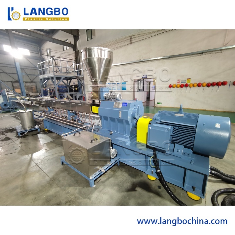 कच्चा माल + योजक → मिश्रण → संदेश देना और खिलाना → हॉपर फीडिंग → शंक्वाकार जुड़वां पेंच एक्सट्रूडर → हॉट फेस कटिंग → चक्रवात विभाजक → कंपन छलनी → ब्लोइंग सिस्टम → स्टोरेज हॉपर → तैयार उत्पाद पैकिंग