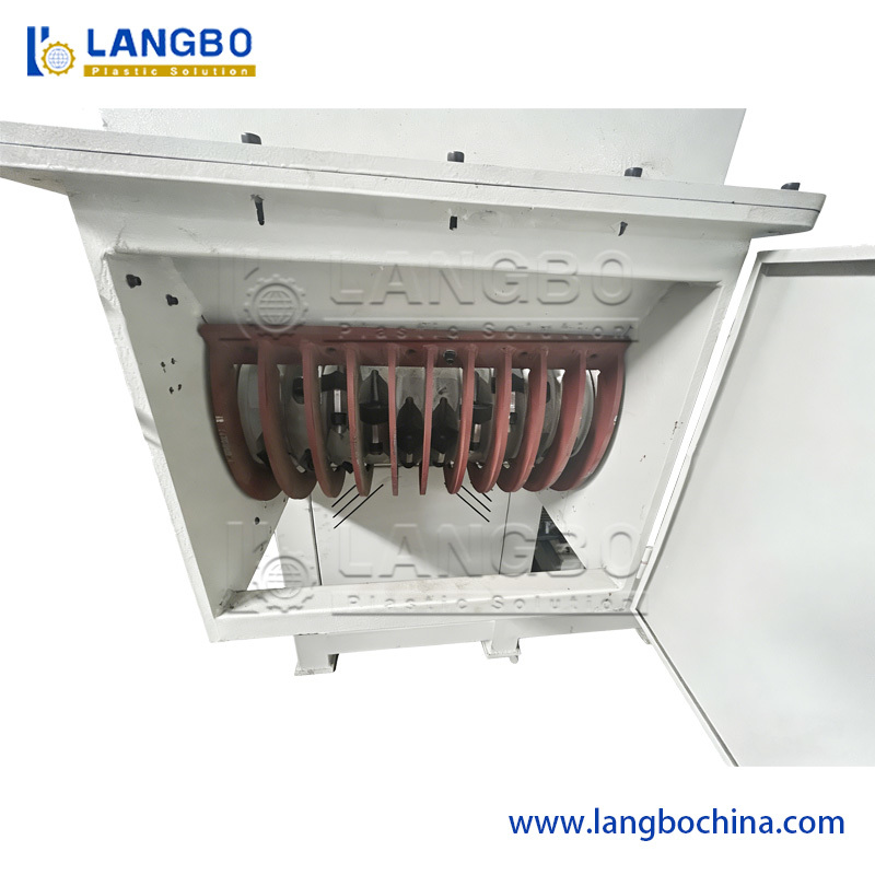 एचडीपीई पाइप एक्सट्रूज़न लाइन को पाइपों को एक्सट्रूड करने के लिए सुचारू रूप से चलाने से पहले, श्रमिकों को मशीन शुरू करने और पूरी प्रक्रिया के दौरान हर विवरण को समायोजित करने की आवश्यकता होती है। इस प्रक्रिया में, कई बेकार पीई मेल्ट लम्प्स उत्पन्न होंगे। यह बड़े ब्लॉक हैं और पर्याप्त कठोर हैं। इसलिए इसे क्रशर से नहीं निपटा जा सकता है, इसे केवल श्रेडर द्वारा संसाधित किया जा सकता है। हमारे सिंगल शाफ्ट श्रेडर में उच्च घूर्णन गति और आकार की चाकू होती हैं। श्रमिक बेकार मेल्ट लम्प्स को पोर्ट के माध्यम से डालते हैं और कण आउटलेट से गिर जाएंगे।