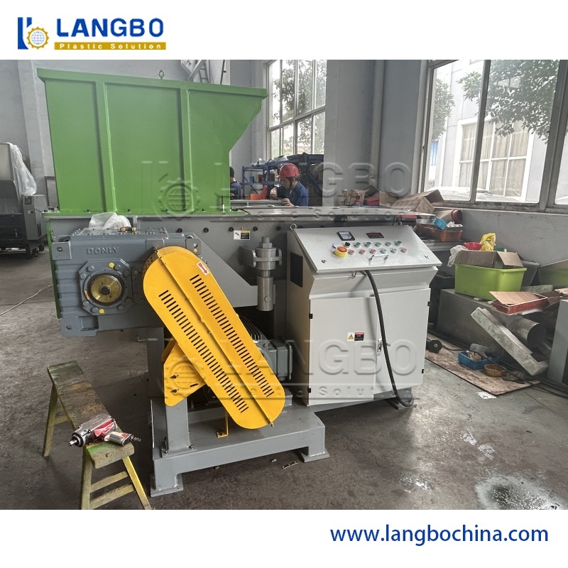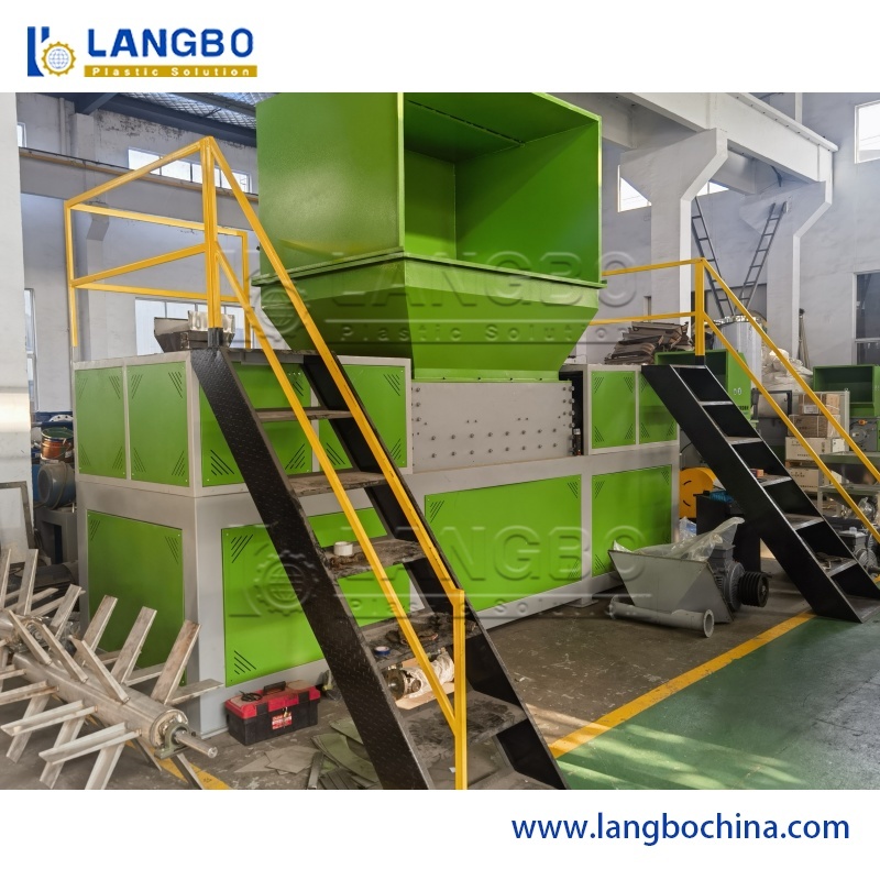 HDPE पाइप एक्सट्रूज़न लाइन को संचालित करने से पहले, श्रमिकों को मशीन शुरू करनी होगी और पूरी प्रक्रिया में सभी मापदंडों को समायोजित करना होगा। इस प्रक्रिया के दौरान, अपशिष्ट PE पिघले हुए टुकड़े उत्पन्न होते हैं जो बड़े, कठोर ब्लॉक होते हैं जिन्हें मानक क्रशर द्वारा संसाधित नहीं किया जा सकता है। हमारा सिंगल शाफ्ट श्रेडर, जिसमें उच्च घूर्णन गति और विशेष आकार की चाकू हैं, इन सामग्रियों को इनपुट पोर्ट के माध्यम से कुशलता से संसाधित करता है, जिसमें आउटलेट से कण निकलते हैं।