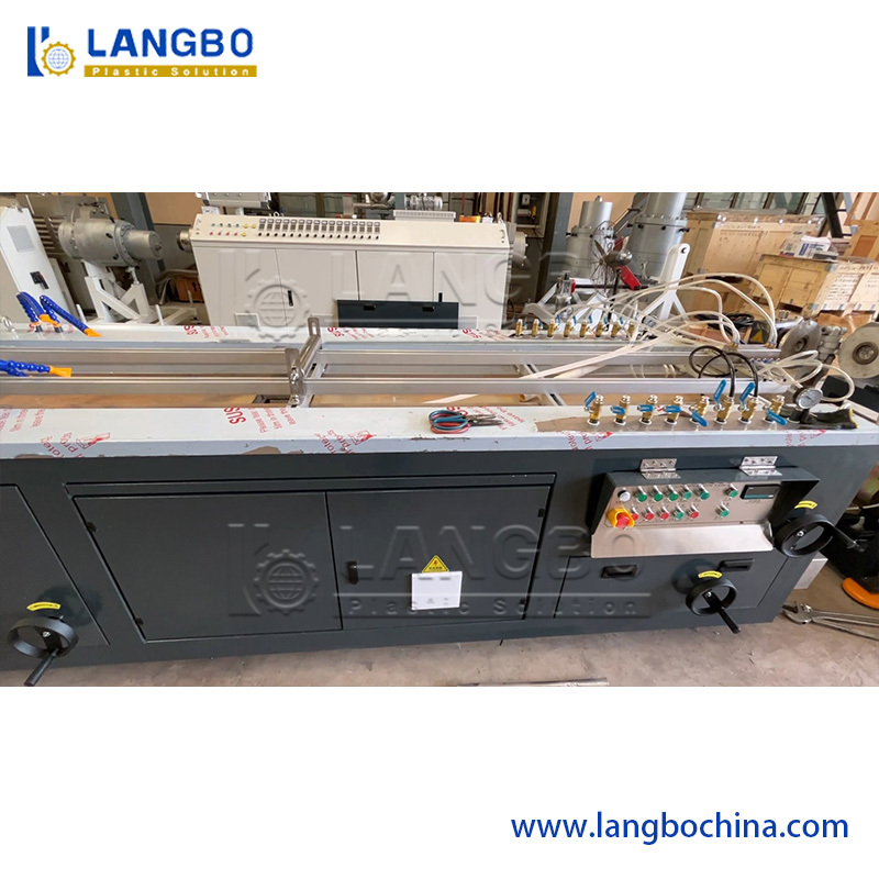 In the middel west countries, the LED light market is vast and huge demand. For the LED light, the cover and bottom profile is made by PC material. The two colors PC LED tube needs co-extrusion crafts. For this line, it equips one 65/28 22kw extruder and another 50/28 11kw extruder. The co-extrusion ensures the profile with two color. We adopt 2500mm long and 600mm width calibration table. For the haul-off machine, it is two belt haul-off method.It ensures the cover and bottom LED light tube fix each other greatly. At the end, we have cutter unit and stacker for lying the finished PC profile.